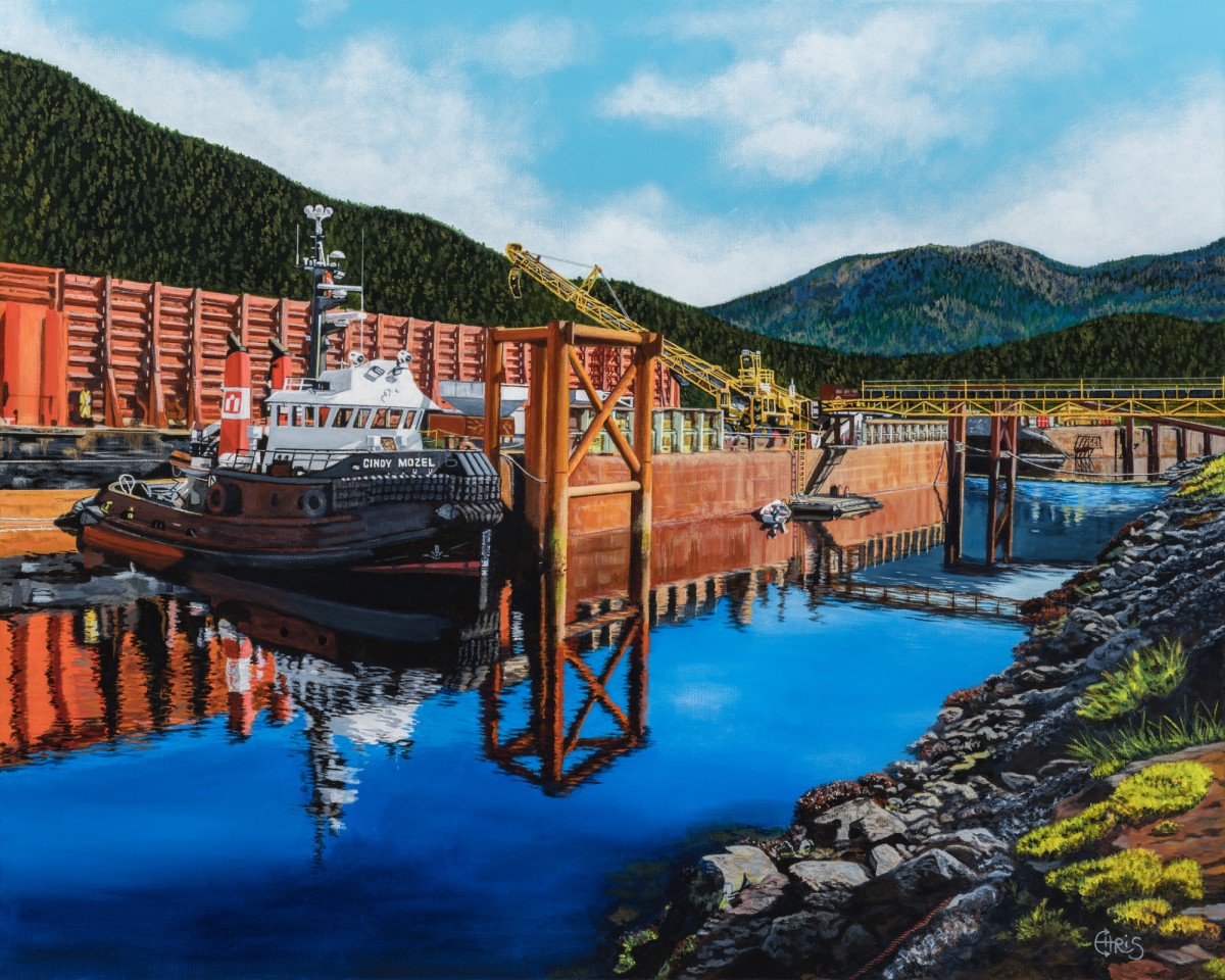 Since 2020 Christina has been focusing on her ongoing project The West Coast Tug Project. Her goal is to paint every working tugboat on the West Coast of British Columbia – and she has already completed more than a hundred of the nearly six hundred that are documented. She will be using her paintings, photographs and notes of these work boats to promote the recognition of this collection as part of Maritime History and has plans for a book to showcase this work.
